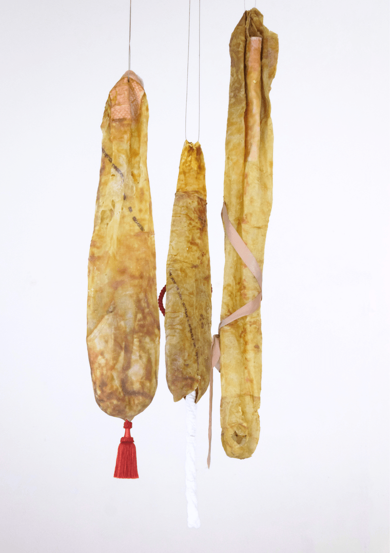A la jonction minéral/animal, animal/végétal, certaines recherches, par le biais de la sculpture et de l’installation, sous tendent des questionnements plus vastes, explorant les conditions des corps domestiqués. Les déchets industriels organiques, objets de consommations, trouvent une forme de sublimation par un processus de biocéramique.