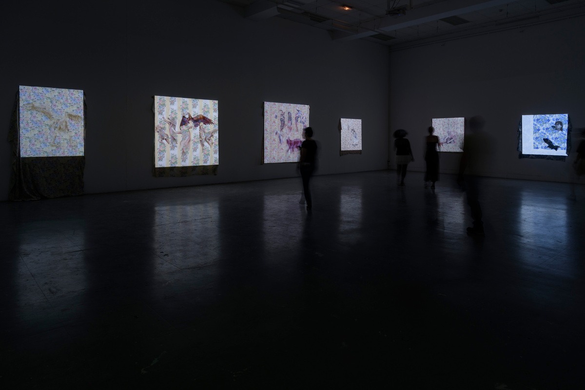 À travers la peinture et la vidéoprojection de stop-motion sur mes toiles, je réactive ces motifs en intervenant dans un geste de réparation. Au moyen de mes toiles, j’engage une quête de réconciliation avec des formes de savoir anciennes, tout en interrogeant la place du vivant.