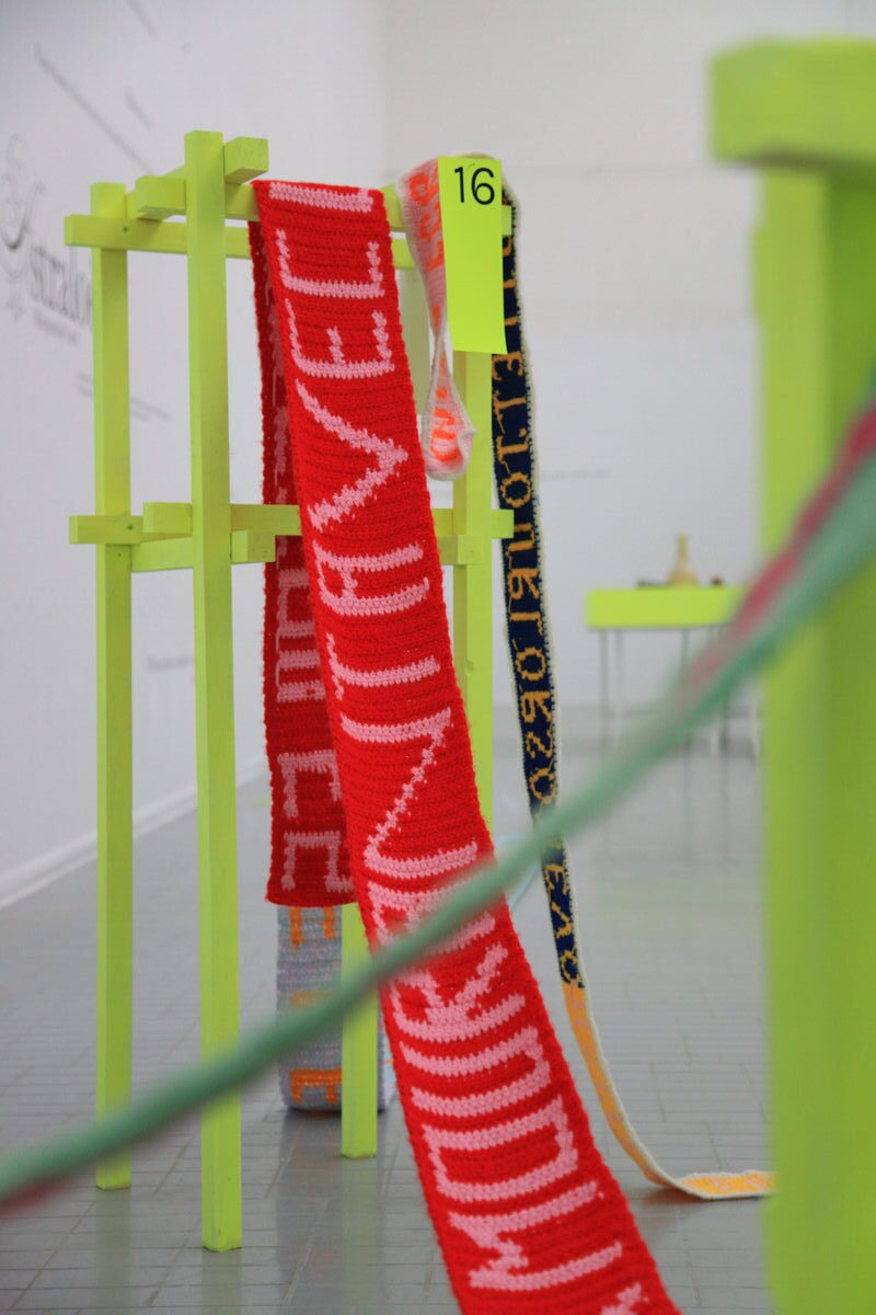 Graphiste plasticien, je mélange des productions graphiques et manuelles, de l'écriture et de la matière. Ma pratique s'articule principalement autour du texte et de son utilisation comme contenu, à travers différentes techniques graphiques et plastiques comme le crochet, l'installation, le tufting, le graphisme, la performance et la céramique.