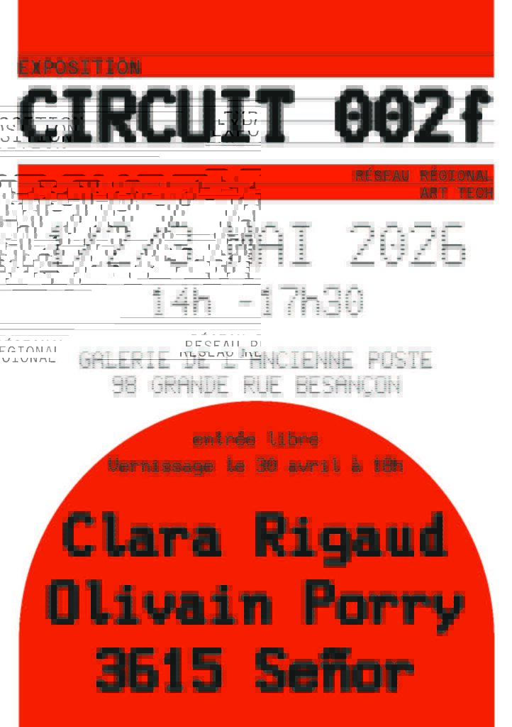 Exposition de sortie de résidence de Clara Rigaud, Circuit 002f fait dialoguer ses travaux avec ceux d’Olivain Porry et de 3615 Señor, le long des fils rouges de l’obsolescence technologique, des déchets et sous-produits électroniques, de la réutilisation et du détournement du matériel numérique.
