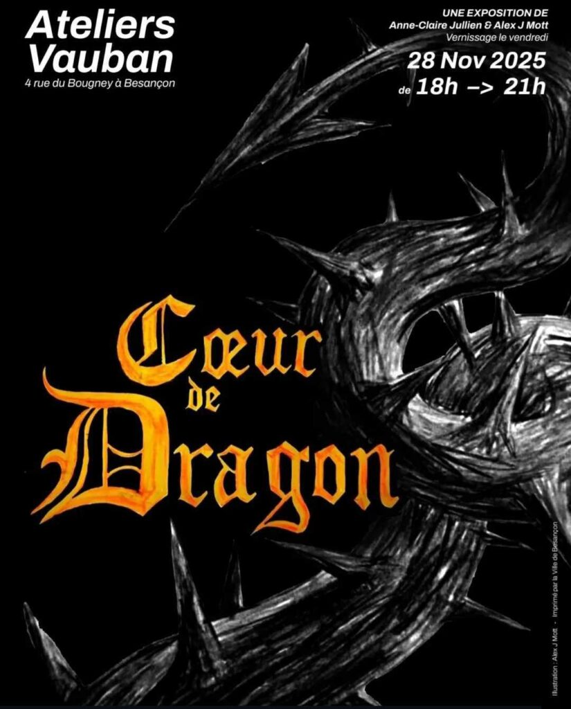 Alex J. Mott et Anne-Claire Jullien (ancienne résidente des ateliers Vauban) dévoileront leurs sculptures et dessins enflammés dans l’exposition : Coeur de Dragon.