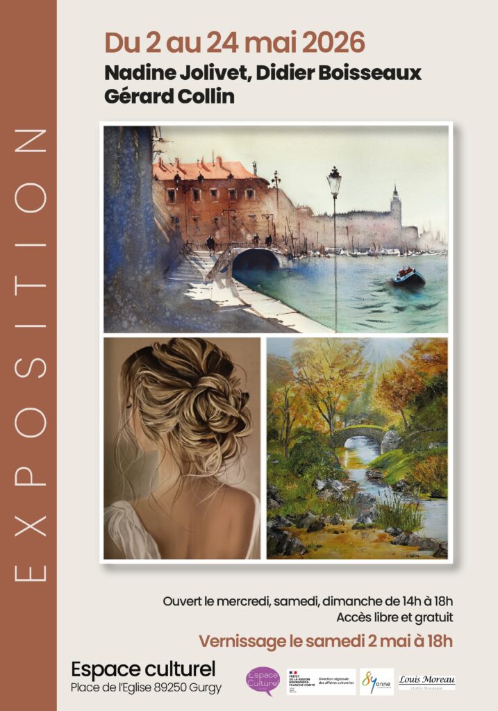 L’exposition du mois de mai réunit trois artistes aux parcours singuliers et aux sensibilités complémentaires : Nadine Jolivet, Gérard Collin et Didier Boisseaux