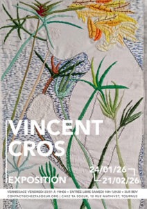 Chez ta sœur à le plaisir de retrouver, Vincent Cros, à partir du 23 Janvier avec des œuvres textiles, des monotypes, des sculptures, des poèmes… et des bijoux (seulement à l’occasion du vernissage, ne les manquez pas!)